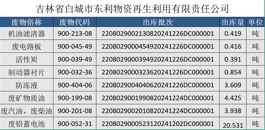 · 東利物資公司2023年度危險(xiǎn)廢物轉(zhuǎn)移……